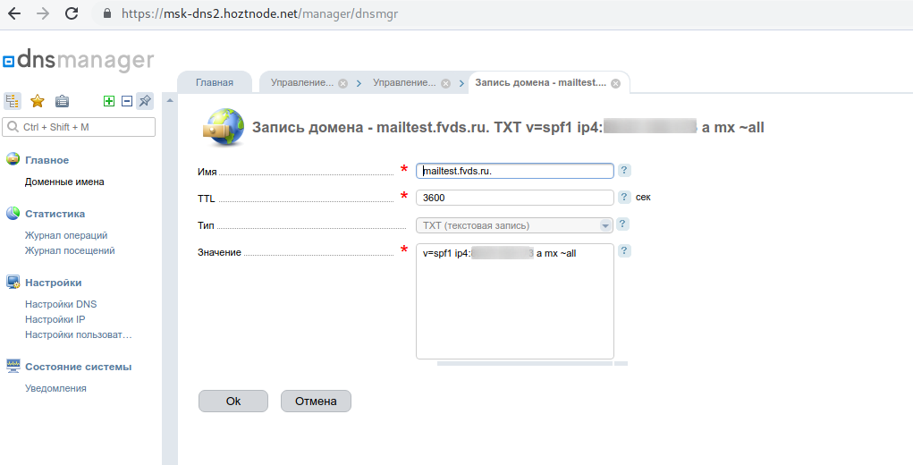 системы. Настройка PTR выполняется через личный кабинет: достаточно
