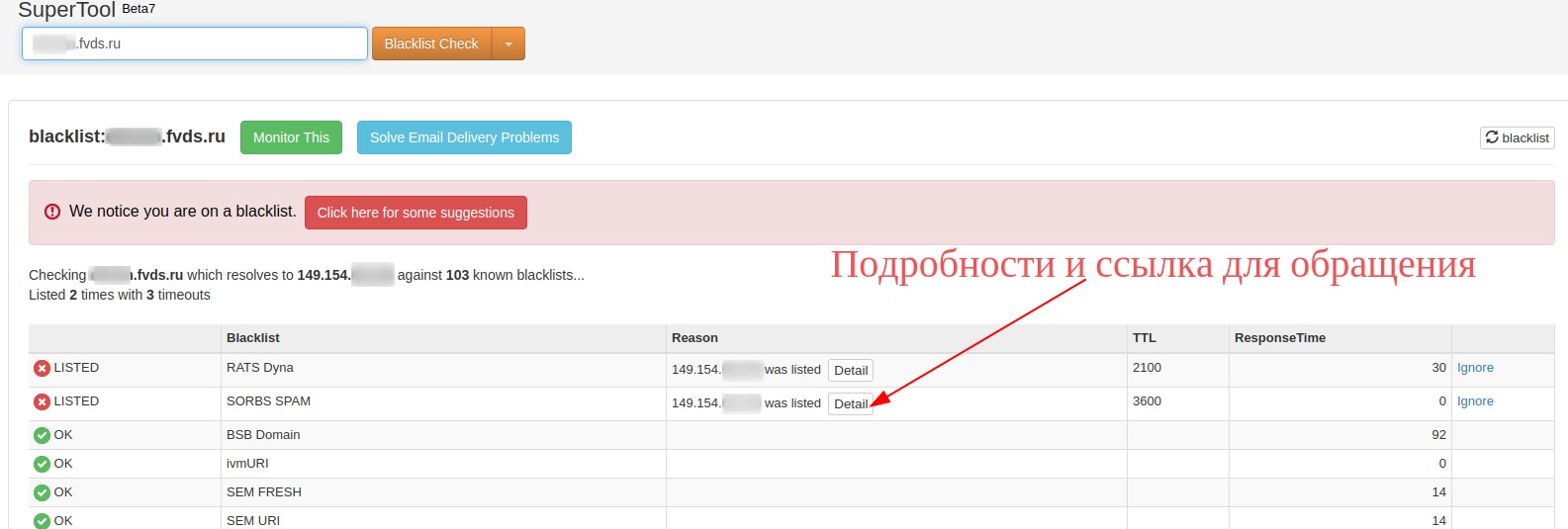 Проверить, есть ли ваш домен или IP-адрес в спам-листах, удобно через